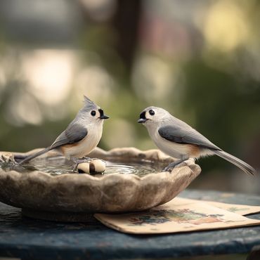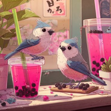 I need a 1:1 image, 1400 x 1400 pixels. 2 cyclists riding on a flat road leading to a mountain in the middle distance. Rider on left is 53 year old male wearing a solid blue jersey, and black biking shorts, and riding a 20 year old touring bike. Sky is overcast, with sun peaking out at the top of the mountain